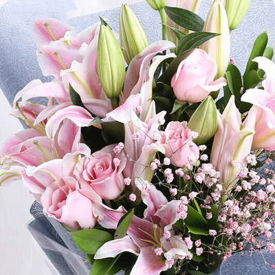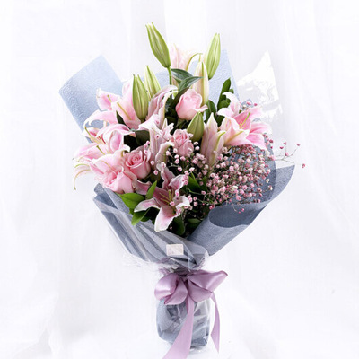 财源如春潮 - nx 开业花篮一对,各色扶郎花,白玫瑰,1枝粉百合