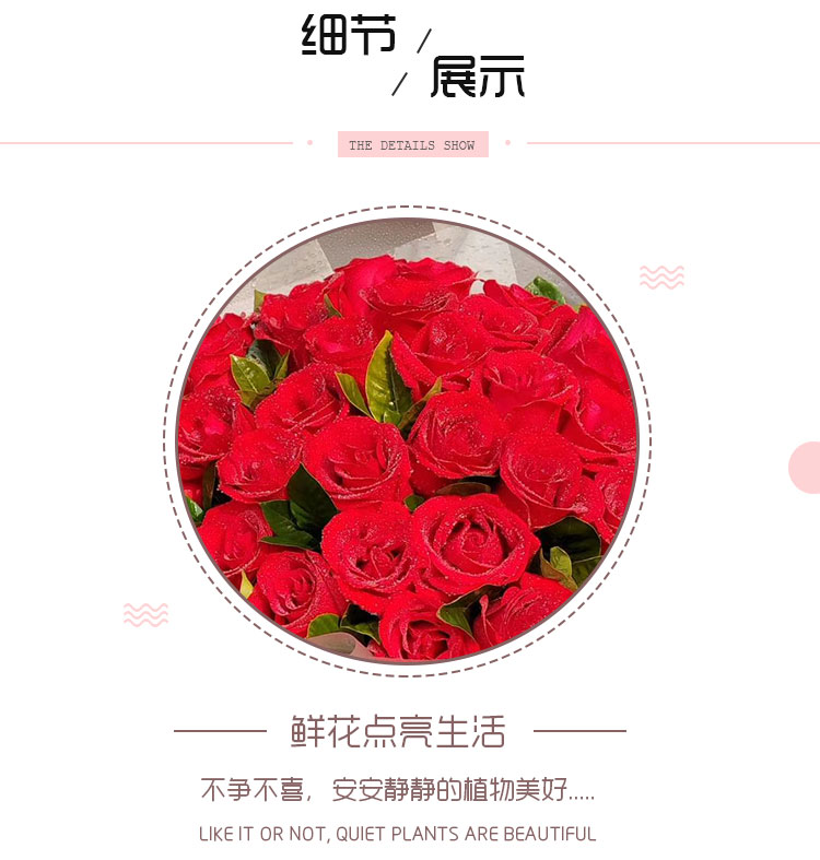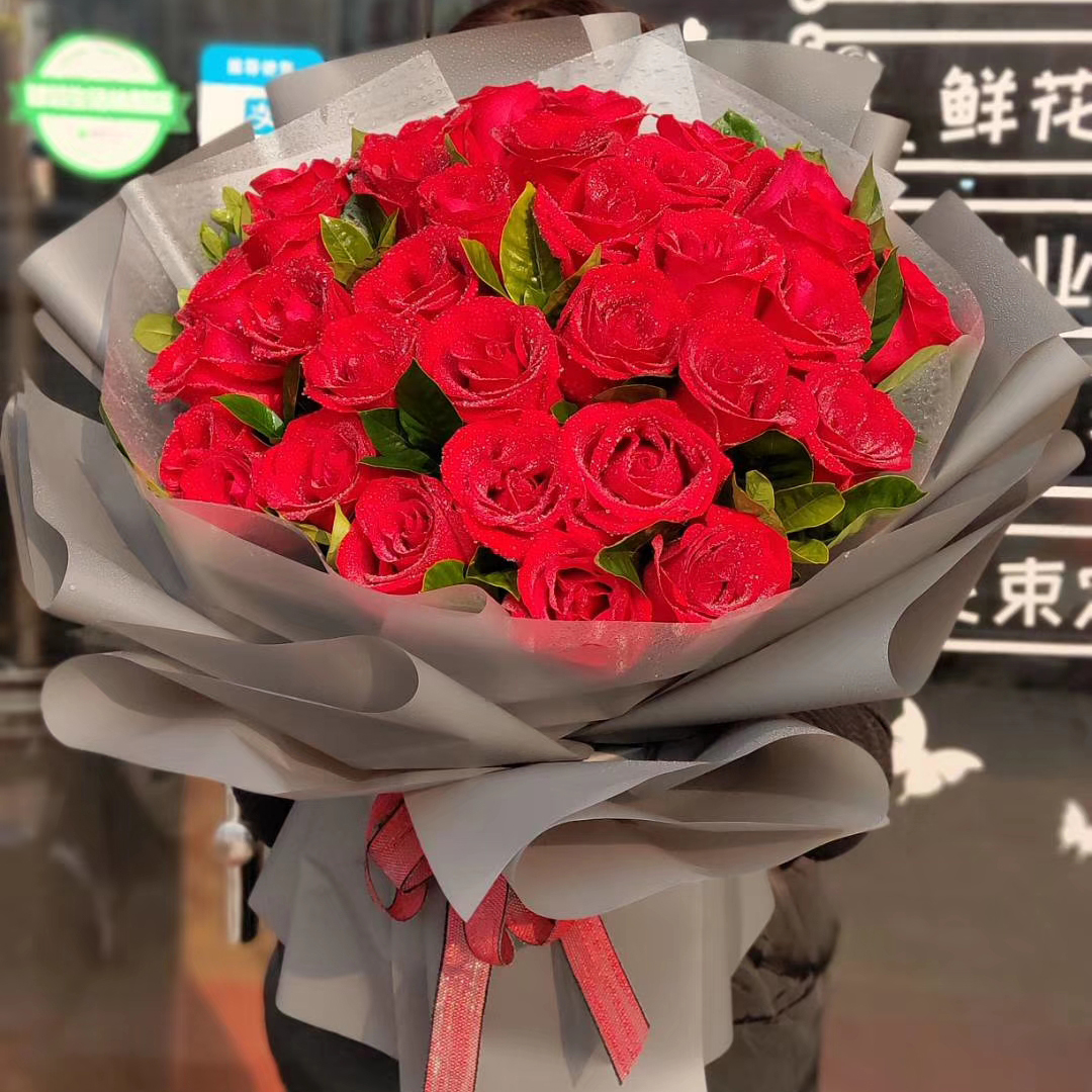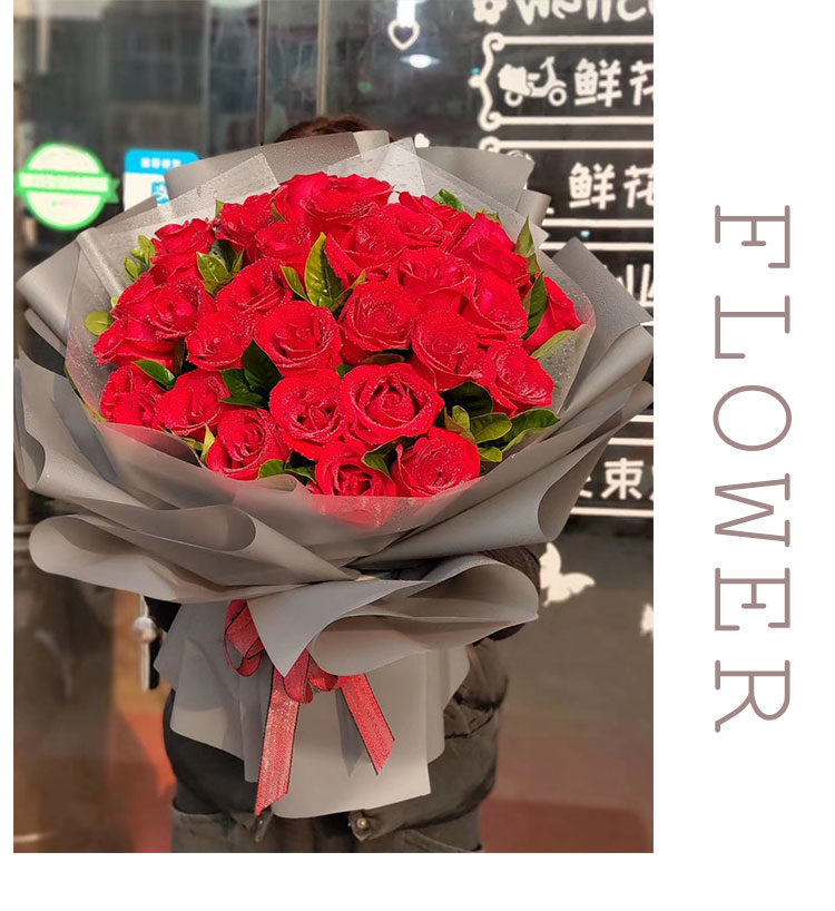 忘情巴黎 - 33枝红玫瑰,尤加利叶搭配、石竹梅或满天星围绕